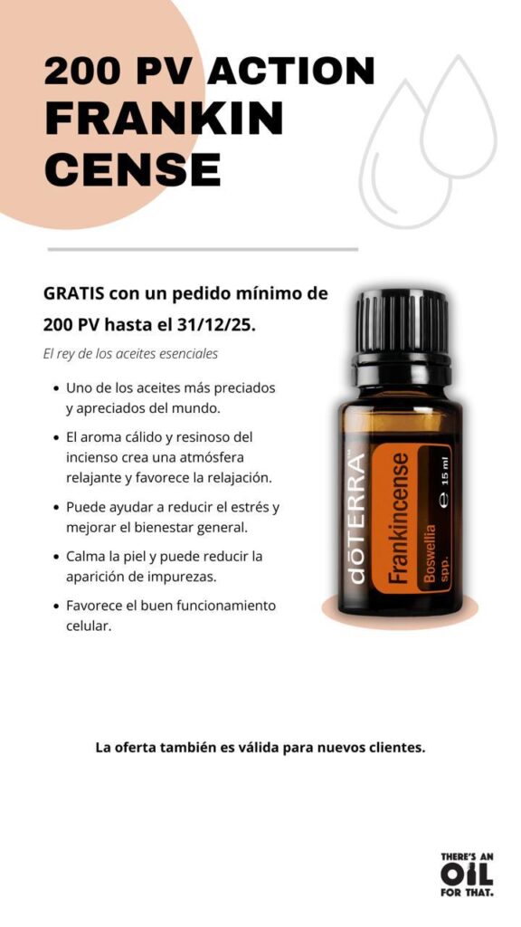 Durante diciembre, con un pedido mÃnimo de 200 PV, recibes un Frankincense 15 ml completamente gratis.